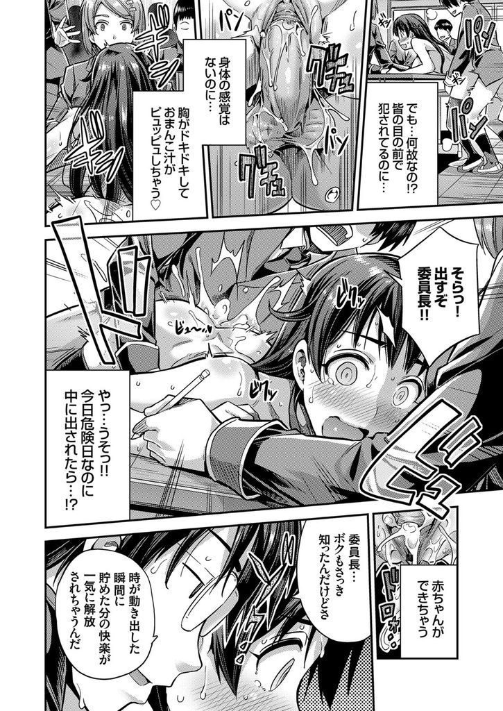 時間停止能力を使い夢にまで見ていた教室で露出プレイを愉しむ変態委員長JK!偶々同じ能力を持つクラスのキモ童貞が先に時間を止められるも意識が残り、委員長のオナニーする痴態を目の当たりにしていたら勃起してしまう!それを勘違いした委員長が尻穴逆レイプして童貞を奪うも、今度は逆襲時姦に遭い処女を奪われ種付けされて皆の前で時間が動き出す!