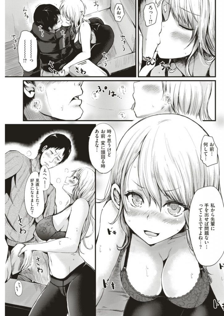 【エロ漫画】大好きな先輩と飲みに行き酔って醜態をさらす肉食系OLが家まで送らせ下着姿で誘惑してイチャラブセックス!