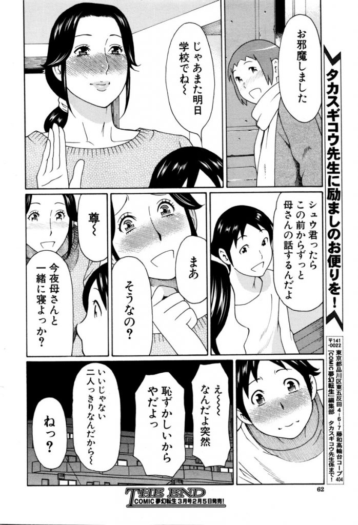 - >【エロ漫画】息子の友達の巨根を見て衝撃を受けた欲求不満なバツイチ熟女が甘えられて母性がくすぐられ肉欲に負け性教育!