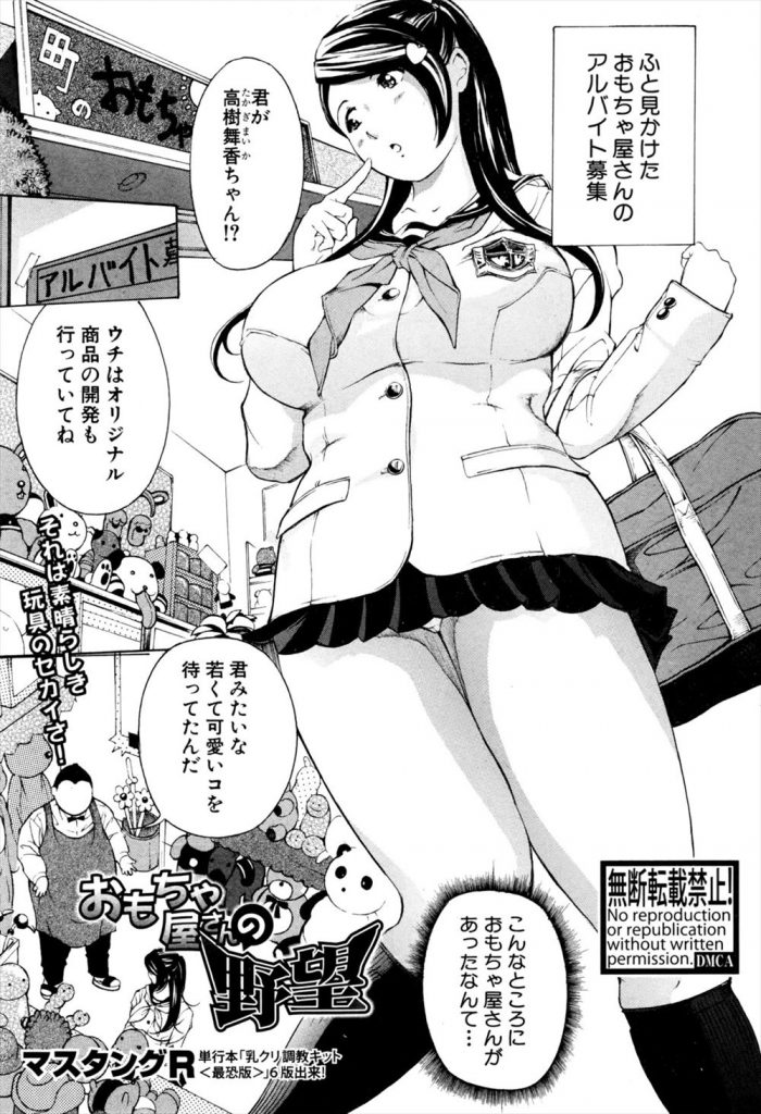 【アダルト漫画】おもちゃ屋さんのバイト募集に訪れた巨乳女子高生がドS店長にド変態グッズで弄ばれる!