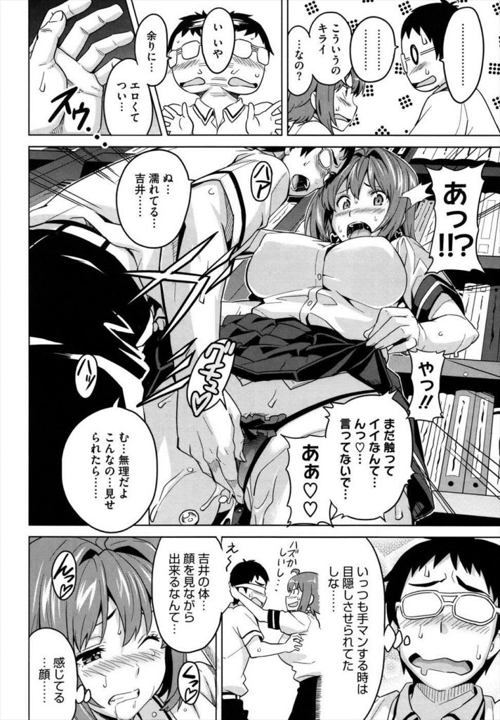 【1話】【エロ漫画】クビレ美人のツンデレJKは妄想癖のH娘で自慰してる童貞君を見つけてザー飲してブルマ姿でロストバージン!