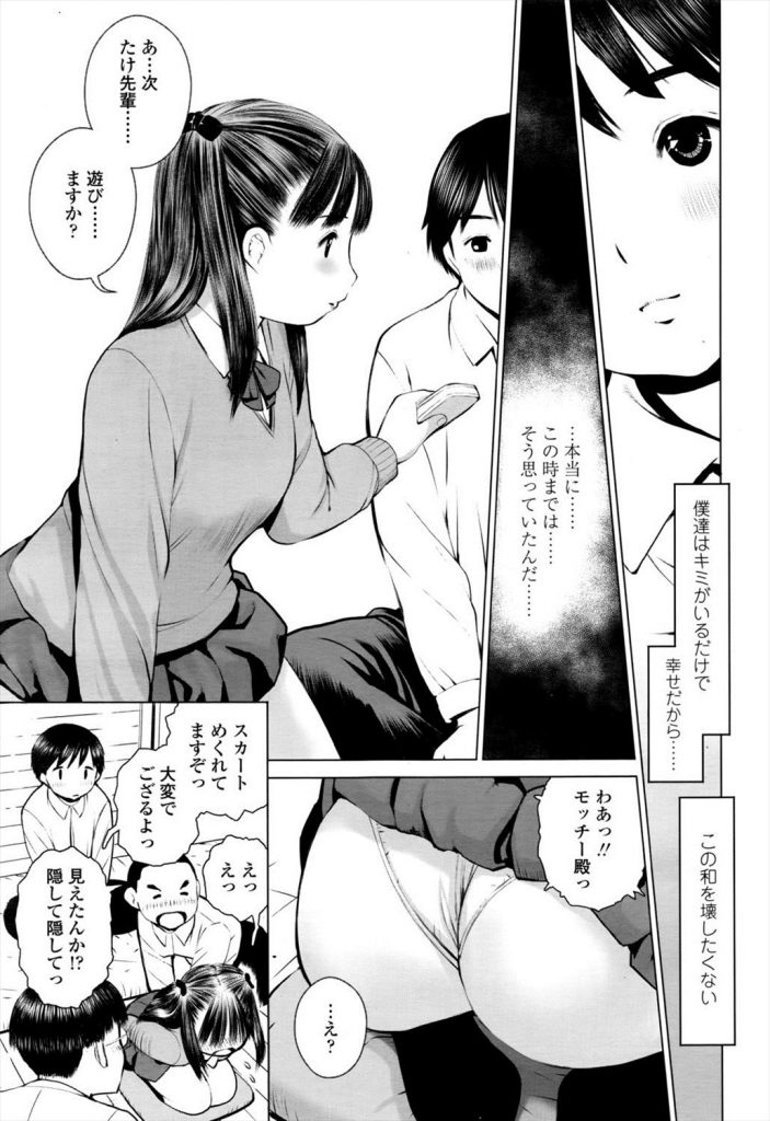 【エロ漫画】文芸部のオタサー姫がオタクの家でムショ帰りのお兄さんにロリ巨乳の身体を弄ばれ複数プレイで精液まみれ!