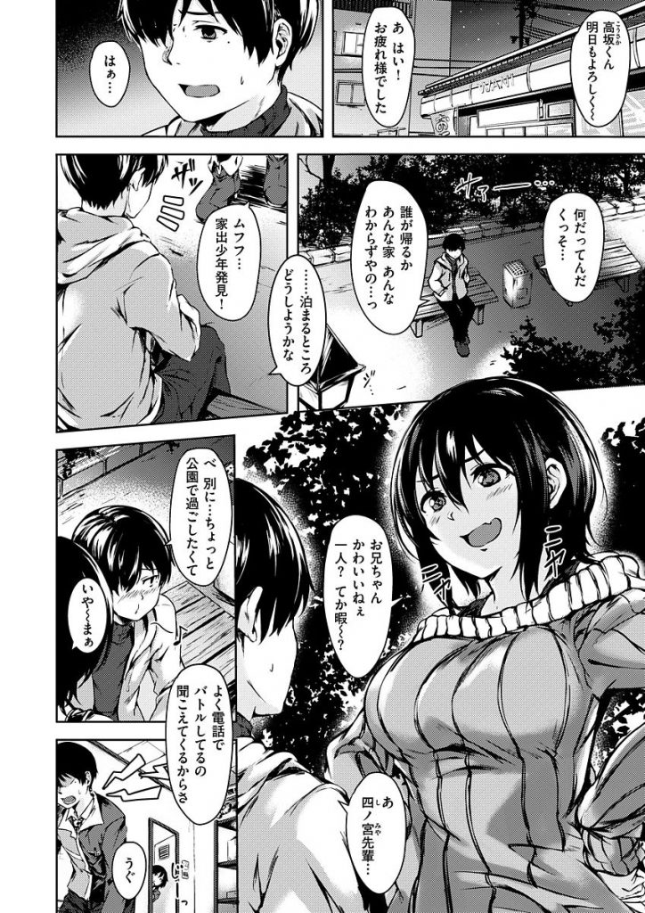 - >【エロ漫画】コンビニバイトの黒髪ショートの病み気味な先輩女子に迫られて慰め合いで体を交えリードされて生チン挿入!
