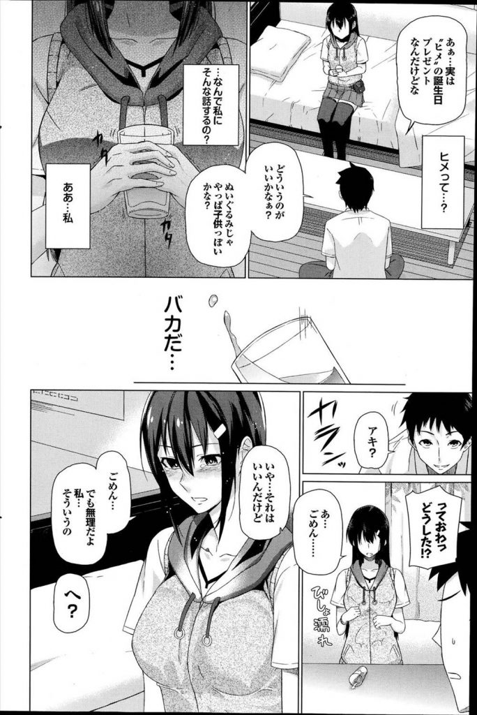 恋人未満の幼馴染男子と付き合いたい娘が男子の家に招かれる!幼馴染にヒメという子の誕生日プレゼントを何にしたらいいか聞かれる娘!娘は傷つき自分を卑下すると幼馴染がフォローする!娘が自分の巨乳を触らせ告白してキスを奪うと幼馴染も告白して勃起ペニスを見せる!イチャラブセックスになり娘にプロポーズして中出しした後にヒメは妹だと知る!