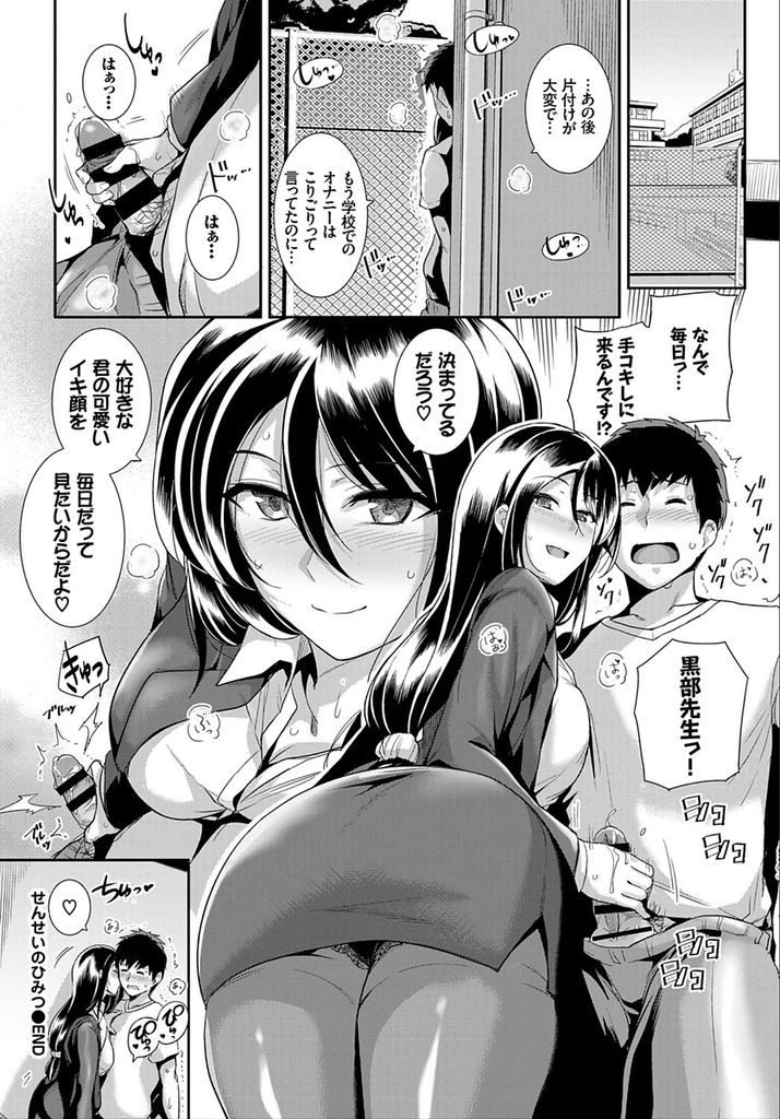 - >【エロ漫画】女教師が好きなサッカー部男子の衣服で部室オナニーしてるのが本人に見つかり二人でロッカー横に隠れ大胆即尺!