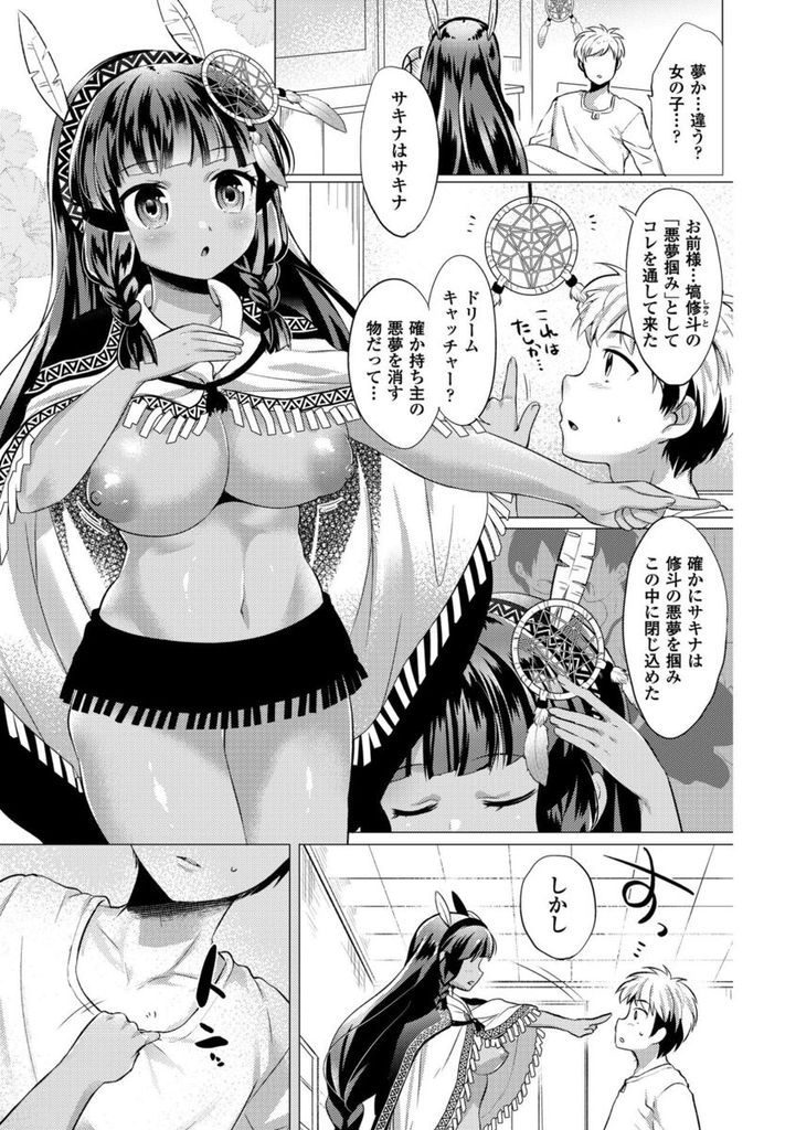 - >【エロ漫画】悪夢にうなされる男子の前に現れた夢掴みを名乗る褐色肌の美少女が悪夢掴みの儀式で濃厚初経験をプレゼント!