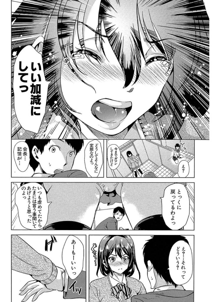 | 【1話】【エロ漫画】ドSなカリスマ生徒会長が事故で記憶を失い無垢な少女になり玩具にされてたドMな後輩男子が自分色に染め直す! |