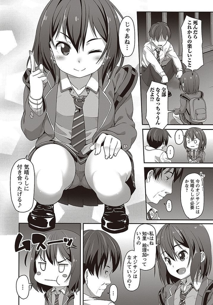 - >【エロ漫画】童貞おじさんの自殺を止めた可愛いJKが気晴らしさせようとラブホで優しくリードして中出しアナルセックス!