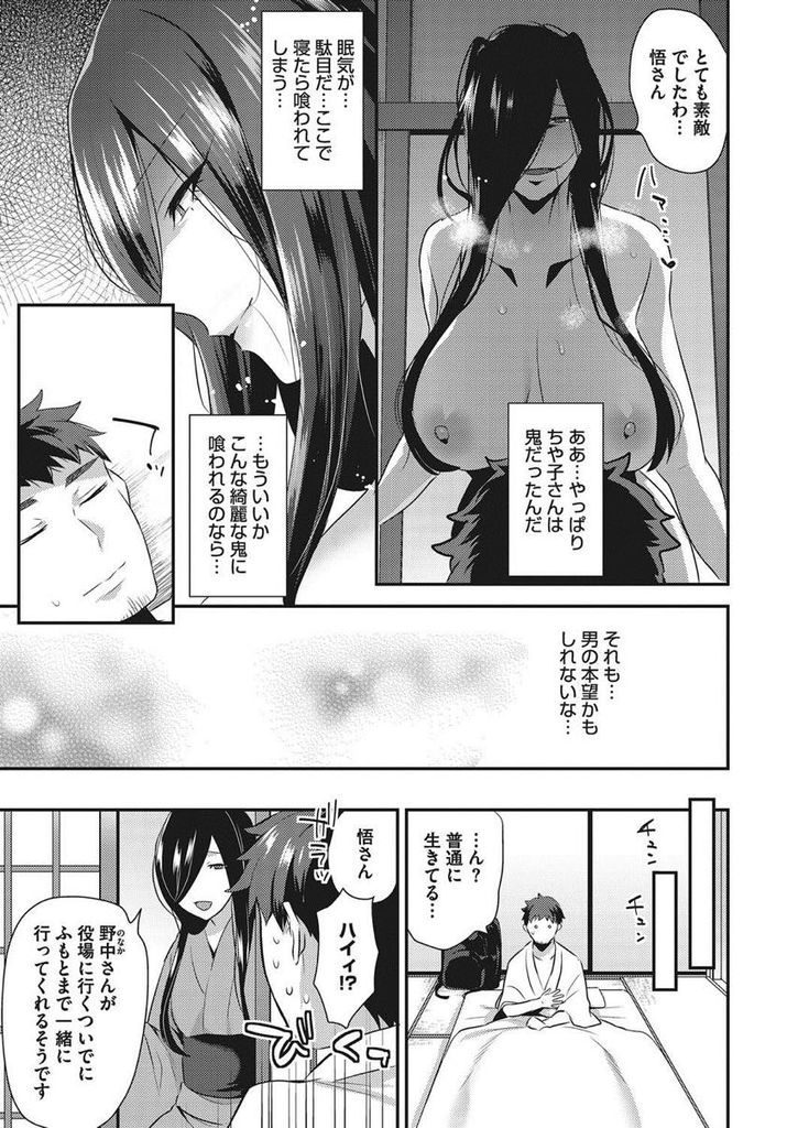 - >【エロ漫画】人喰い鬼が棲みつく山で道に迷った男をもてなす妖艶な黒髪美人が逞しい体を見て発情し自らハメてマラを喰らう!