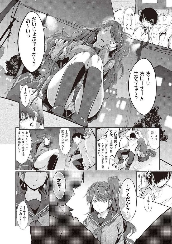 - >【エロ漫画】困ってる人を放っておけない聖人の様なギャルJKがゴミ捨て場で寝てる男を家に招き入れ風呂場で処女を授ける!