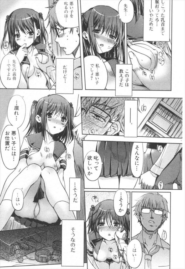 【エッチ漫画】教え子のセーラー服JCを拘束具と首輪を付けてスパンキングし電動バイブ使い生ハメする教師!