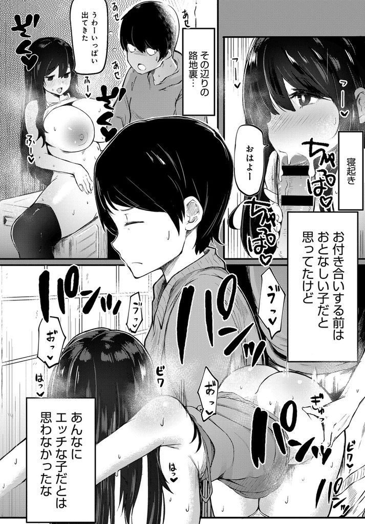 - >【エロ漫画】大人しそうで実は好き者だった爆乳彼女とデートで漫喫の個室に来たらペースに乗せられ激しく静かに生本番!