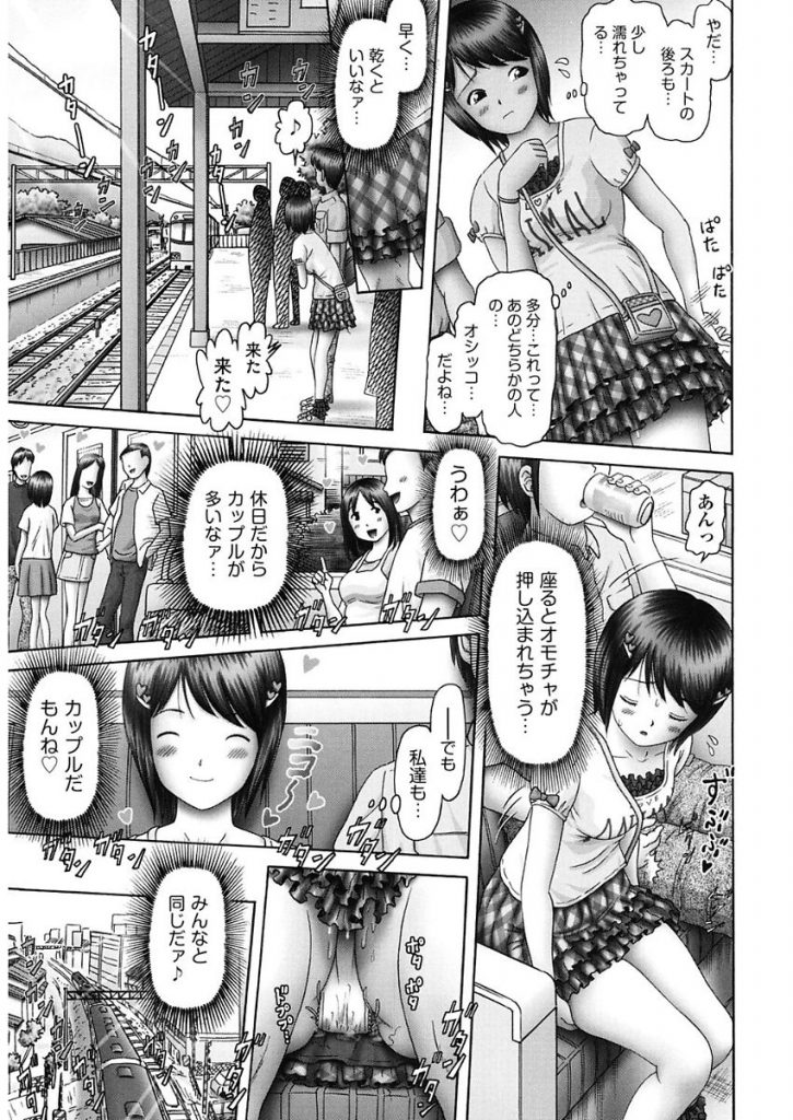 【エロ漫画】彼氏に犯されて愛を感じるJSが初デートで遅刻し汚い駅の便所で中出しされ玩具で栓されたまま遊園地で絶頂!