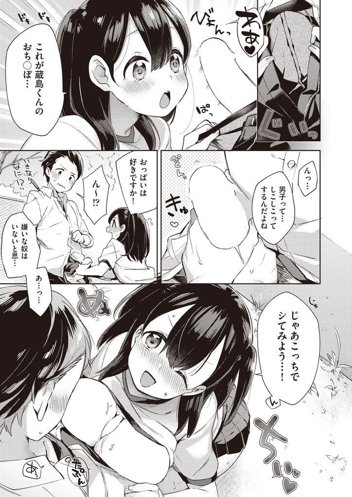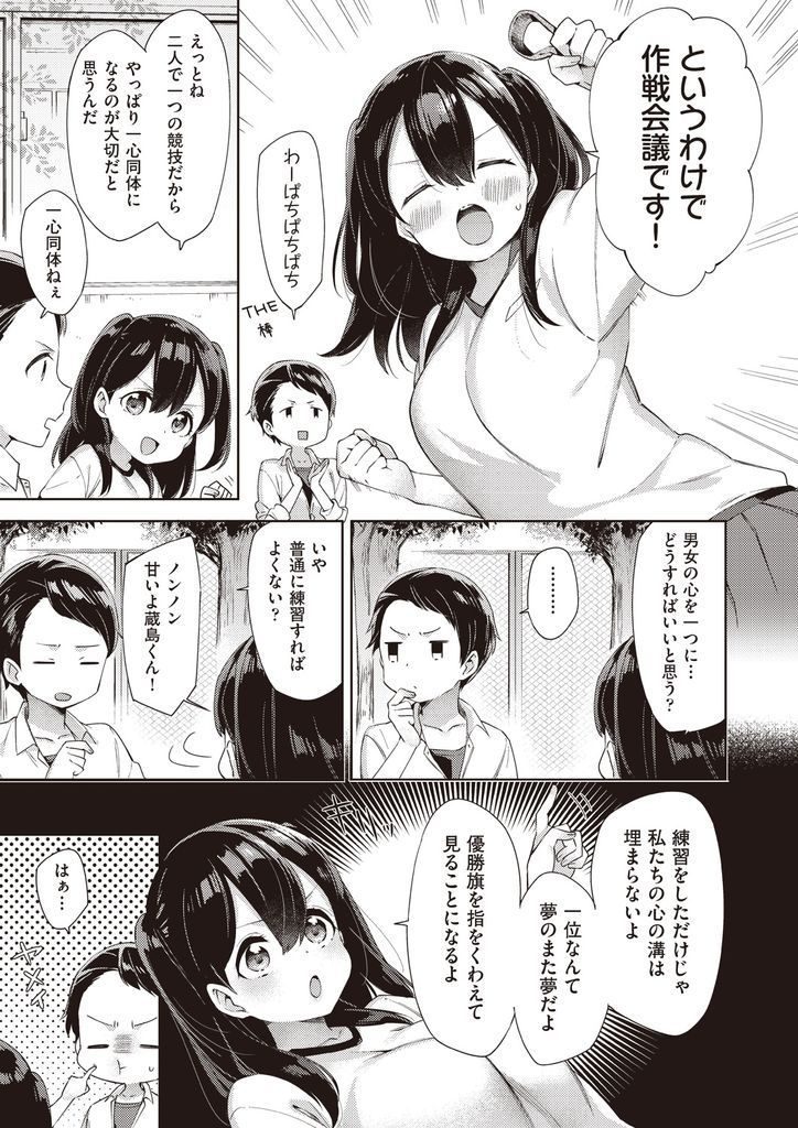 - >【エロ漫画】体育祭で好きな男子と二人三脚のペアになったJKが胡散臭い雑誌を参考に一心同体になる為にエッチで絆を深める!