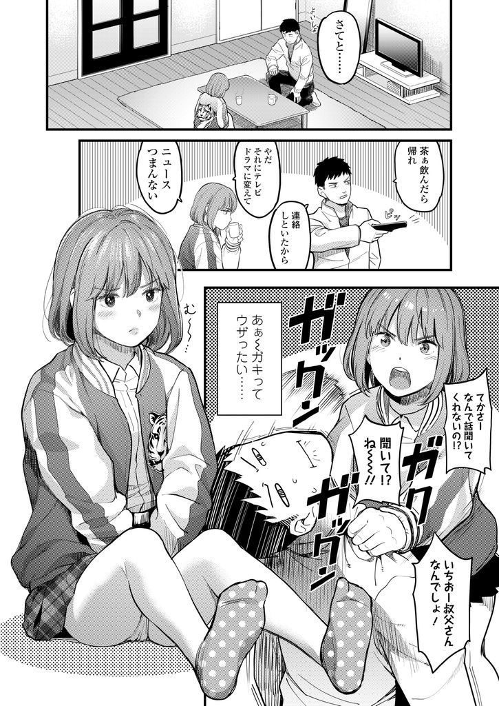 【エロ漫画】ママとケンカして叔父の家に押し掛けた姪っ子のエロガキJKが添い寝で肉棒を弄り気を引こうと嫉妬心を煽る!