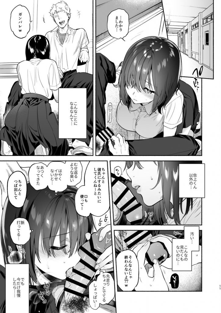 漫研で知り合った漫画家志望の陰キャ男子と初めて付き合った清楚系JKが彼氏に求められて校内セックスしたらクラスの不良男子に盗撮されて脅迫される!ネット配信すると脅されて退学を免れる為に身体を差し出しフェラでご奉仕させられる!後日、家に来られ身体を弄られてから浮気チンポをハメられる!彼氏とのHを上書きされて快楽に負けてしまう!
