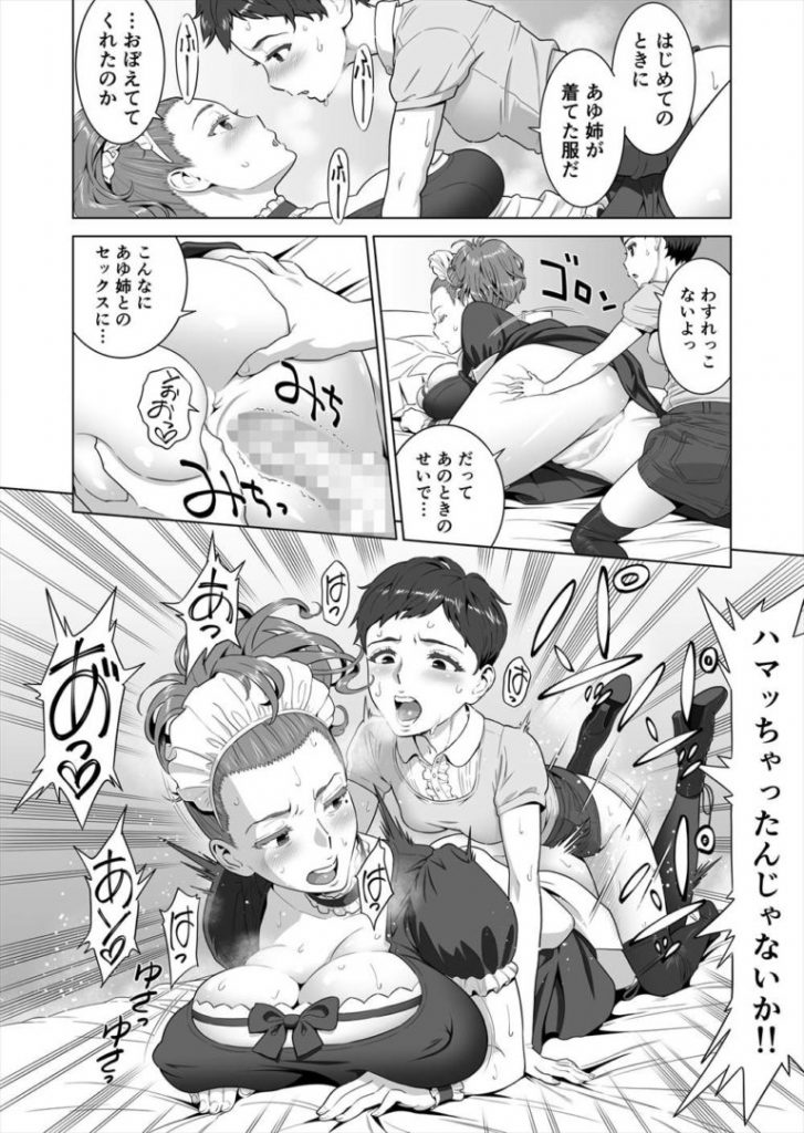 【エロ漫画】継姉に性処理してもらうショタが騎乗位で剃毛したパイパンマンコに導かれデカパイ揺れる激しい腰使いで連射!
