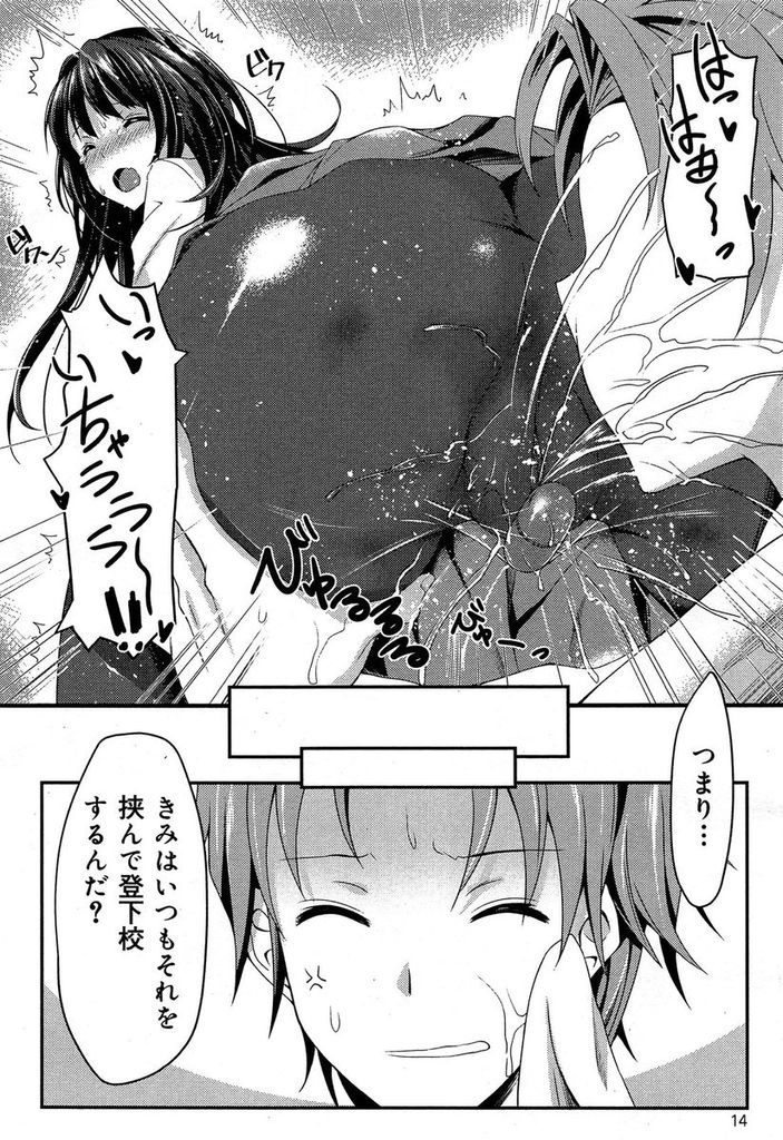 - >【エロ漫画】可愛く清楚系に見えて実はローターをワレメに挟んで登下校する妄想痴女JKが秘密を知った男子と公園青姦!