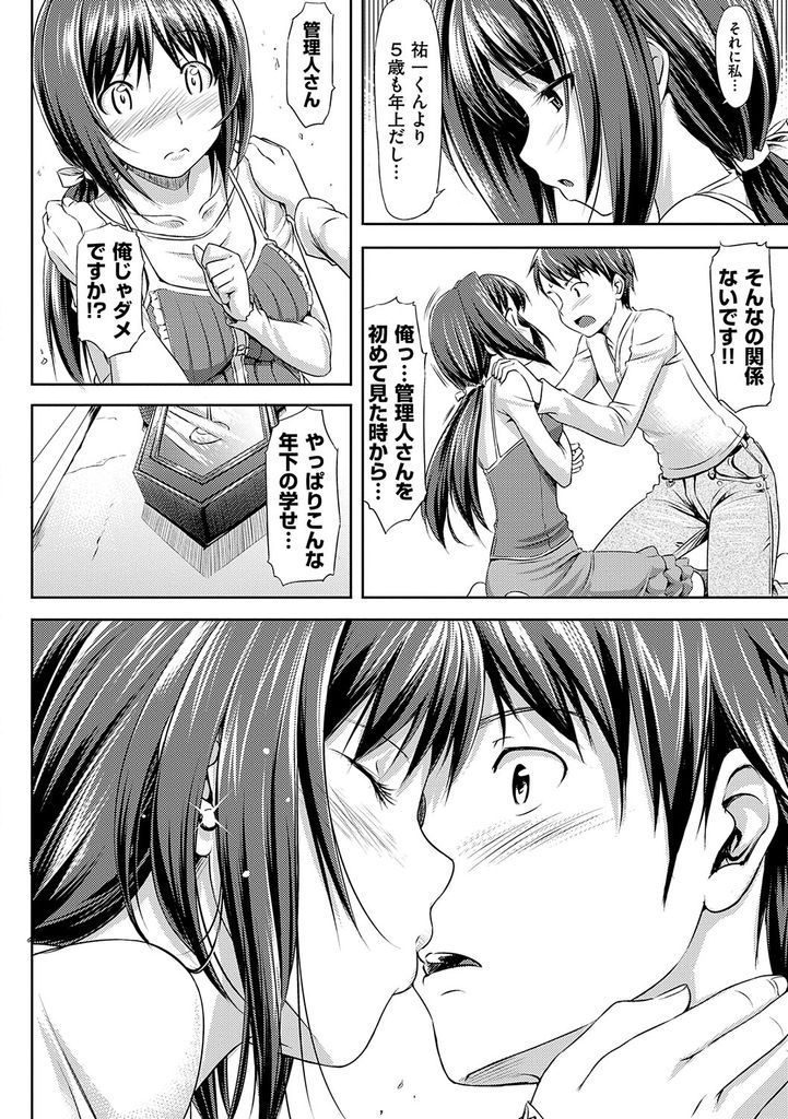 | 【1話】【エロ漫画】若くドジっ子な年上管理人に惚れる青年が告白しキスされるとドキドキさせた責任を取りいちゃラブセックス!(Now) |
