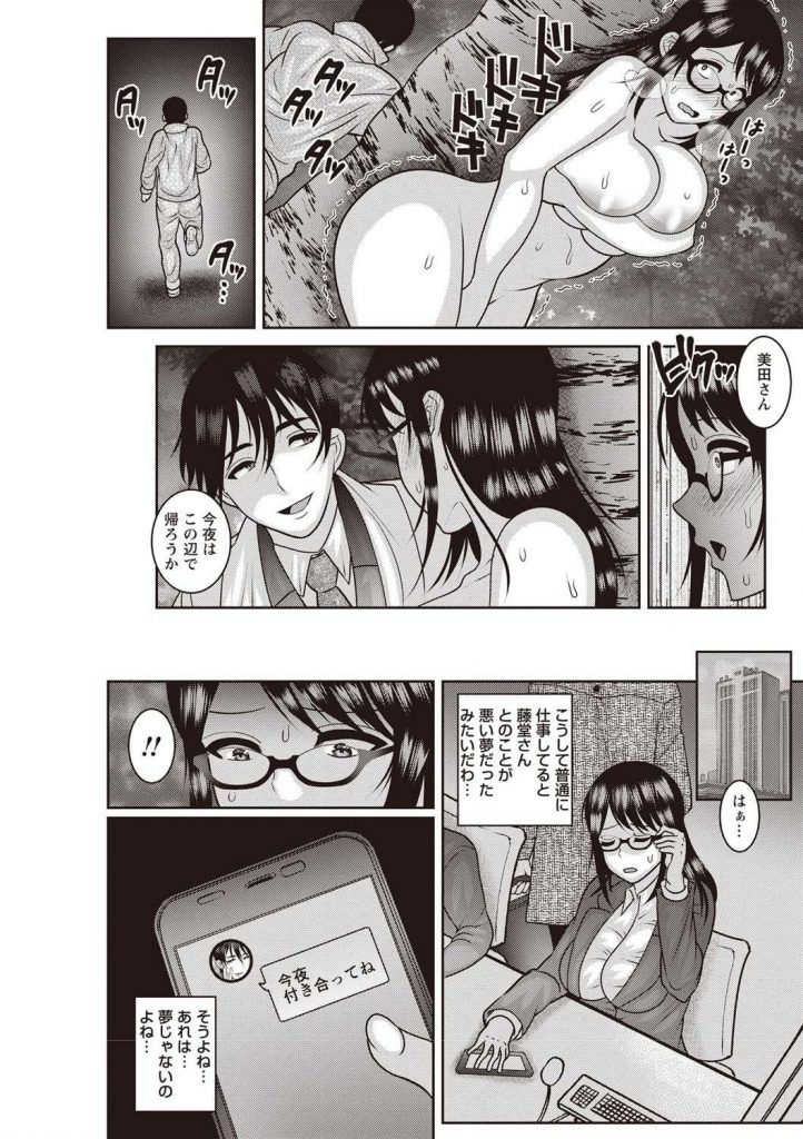 | 【1話】【エロ漫画】上司とのワンナイト不倫が変態性癖な先輩にバレた眼鏡OLが口止めで露出調教され挙句に男湯でハメ撮り輪姦!(Now) |