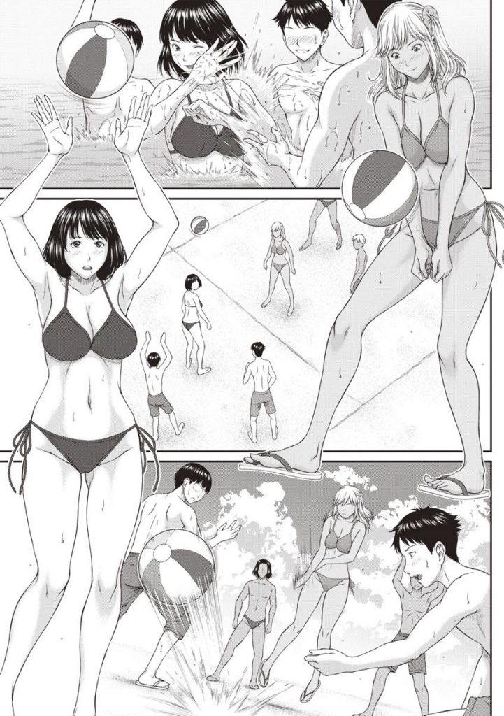 | 【1話】【エロ漫画】夏の思い出作りに男友達をセッティングし海水浴に来た清楚系JKが童貞達と乱交する姿を黒ギャルに見せつける!(Now) |
