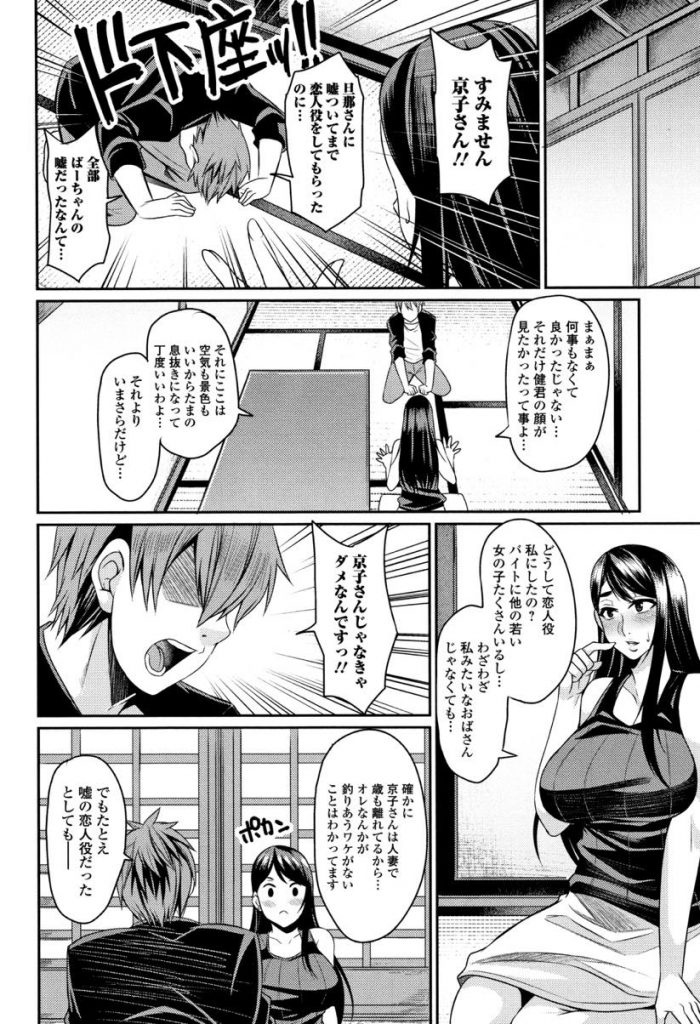 【エロ漫画】パート先の若者に恋人役を頼まれた豊満ボディの爆乳人妻が告白され胸キュンし火照った身体で逆夜這い不倫H!