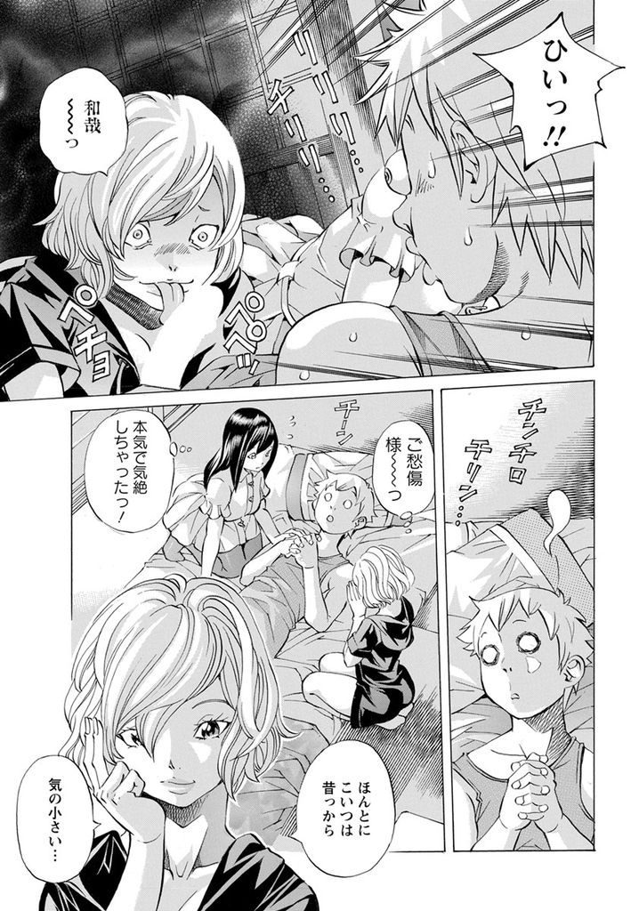- >【エロ漫画】青年を逆夜這いしお化けのフリで驚かせるイトコと幼馴染のビッチ美女二人が気絶した彼を目隠し緊縛逆レイプ!