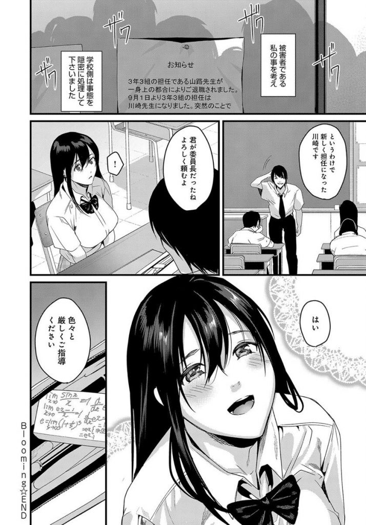 最後のコマは、嫌な思い出なら捨てるはずの消しゴムを未だに持ってるという描写だから、懲りてないというよりは、「色々と厳しくご指導ください」っていう台詞とあわせて、「また調教してもらいたい」みたいな、ヒロインが堕ちたという暗喩だと思うんだけどなあ。