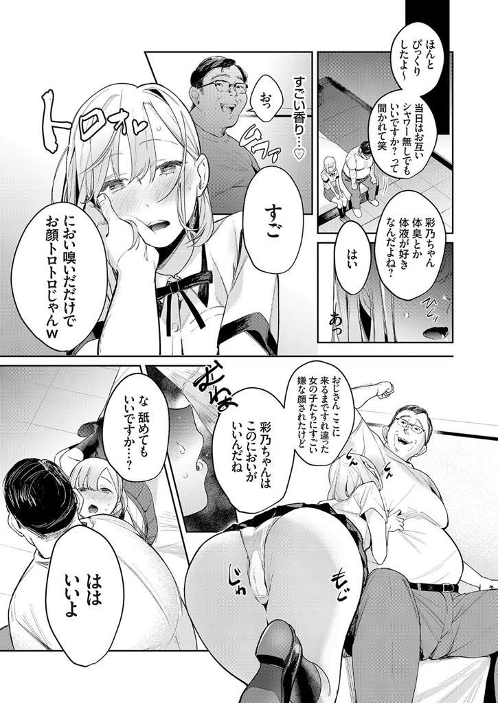 - >【エロ漫画】体液を飲み合う事に快楽を見出す変態JKが刺激を求めキモ親父の強烈な臭いを放つ汚いチンカスペニスを頬張る!