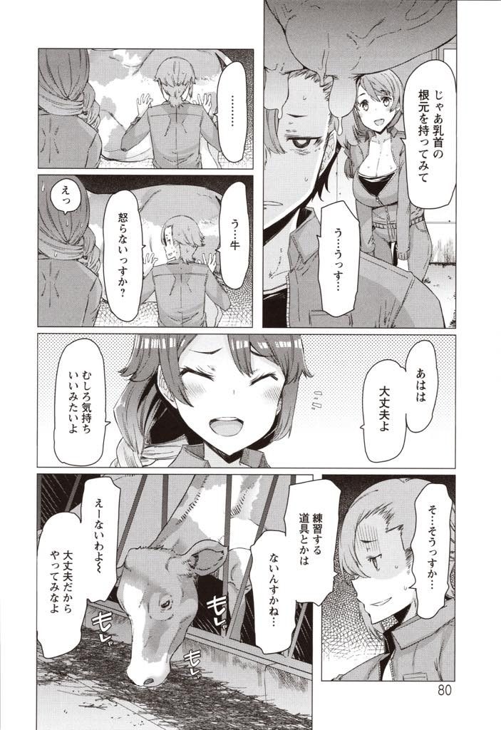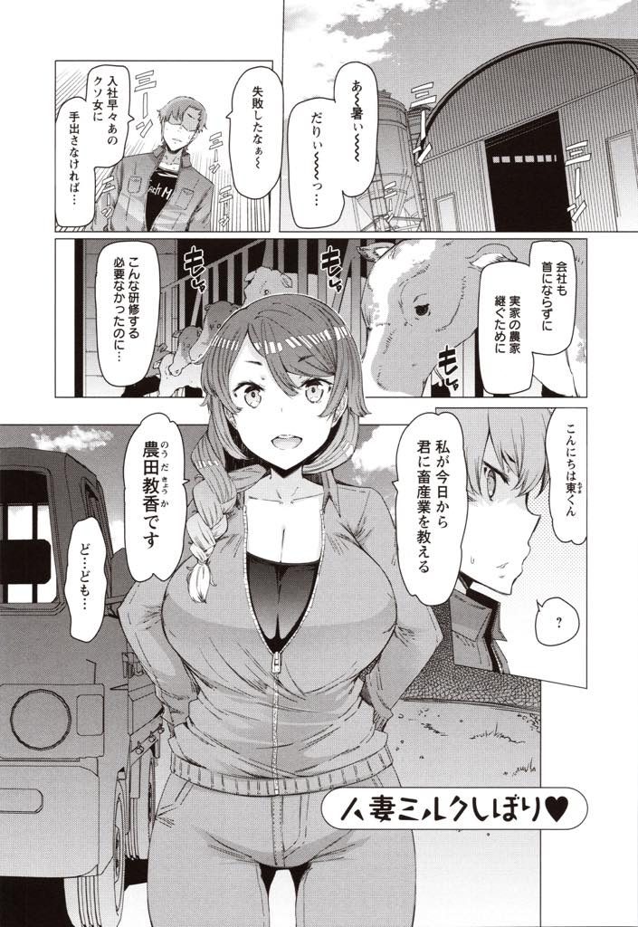 【エロ漫画】畜産業を教わるヤリチンが押しに弱い乳牛並みの爆乳人妻で搾乳練習し乳首イキさせ危険日の孕ませセックス!
