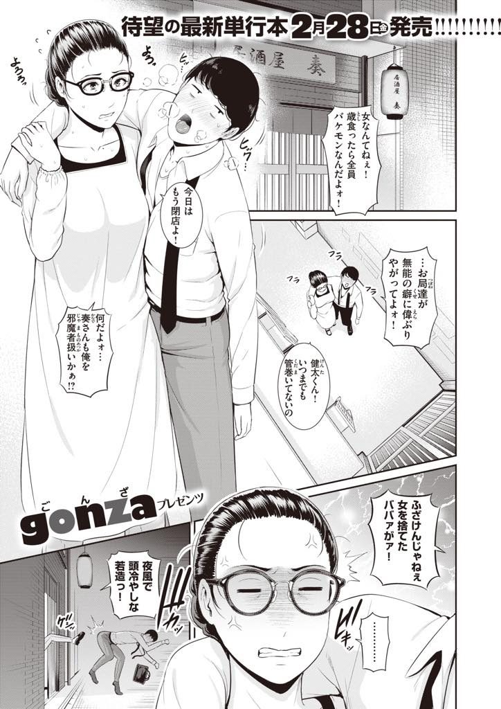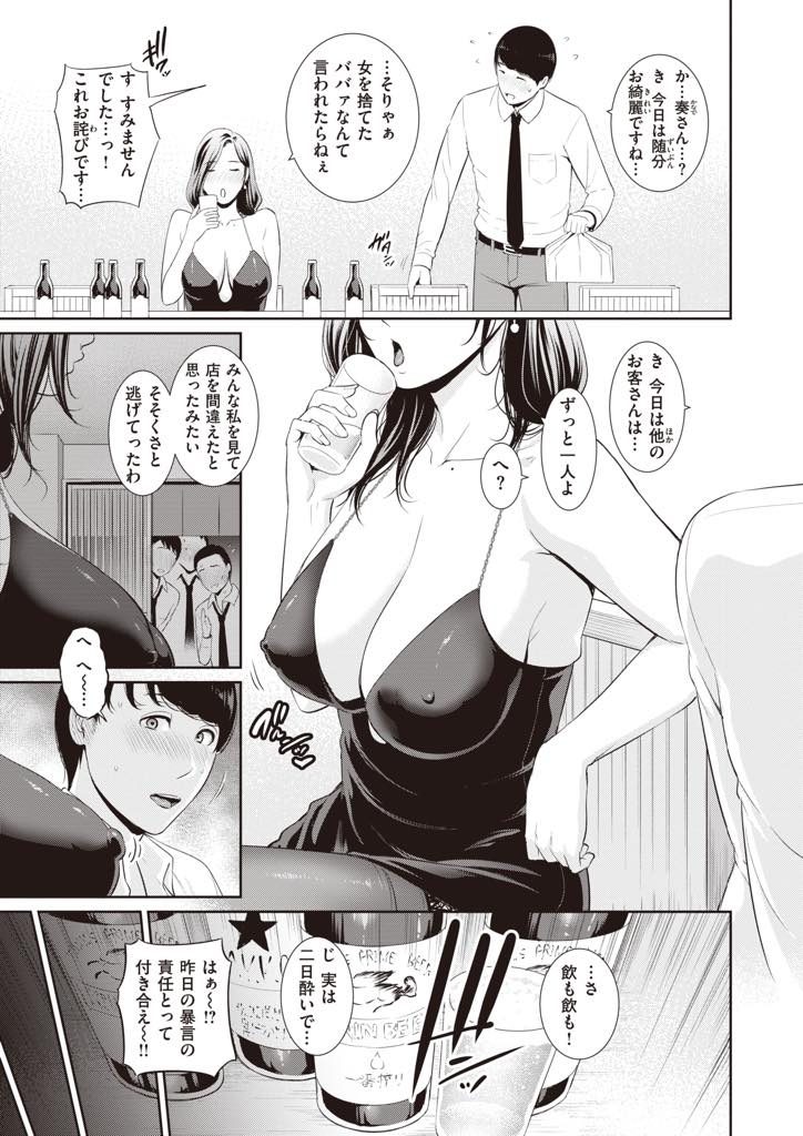 - >【エロ漫画】泥酔客にババァと暴言を吐かれた居酒屋の熟女ママがセクシードレスで色気を振りまき酔いどれ店内セックス!