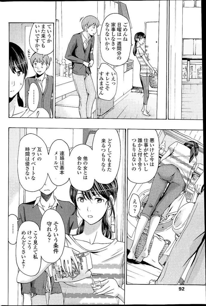 - >【エロ漫画】なじみの店のバイト君に足マッサをお願いしノリでHするアラフォーOLがセフレ関係になり情が移って色恋SEX!