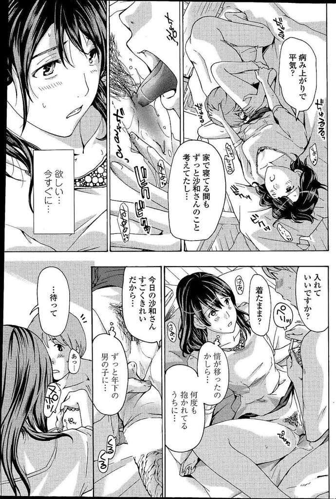 なじみの店のバイト君が大学で陸上してると知り足マッサをお願いするアラフォーOLが身体を求められたので一回くらいいいかとノリで行きずりセックスしちゃう!そして週末だけのセフレに発展して何度も身体を重ねてるうちに情が沸いてくる!彼が風邪を引いて週末に会えない日がくると身体が熱くなり恋していると気づきイチャラブセックスして恋愛発展!