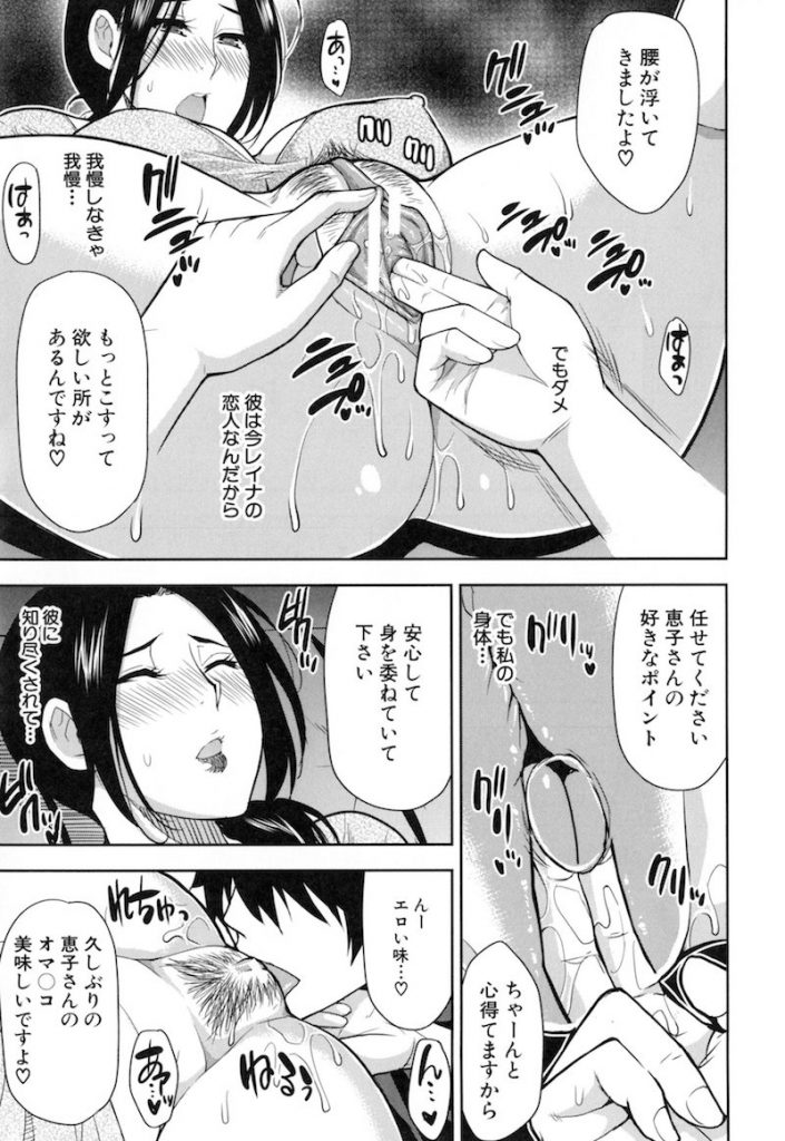 - >【エロ漫画】若い不倫相手が娘と付き合い身を引いた母親が久しぶりのチンポに躰が疼き母娘丼二股セックスでアクメ!