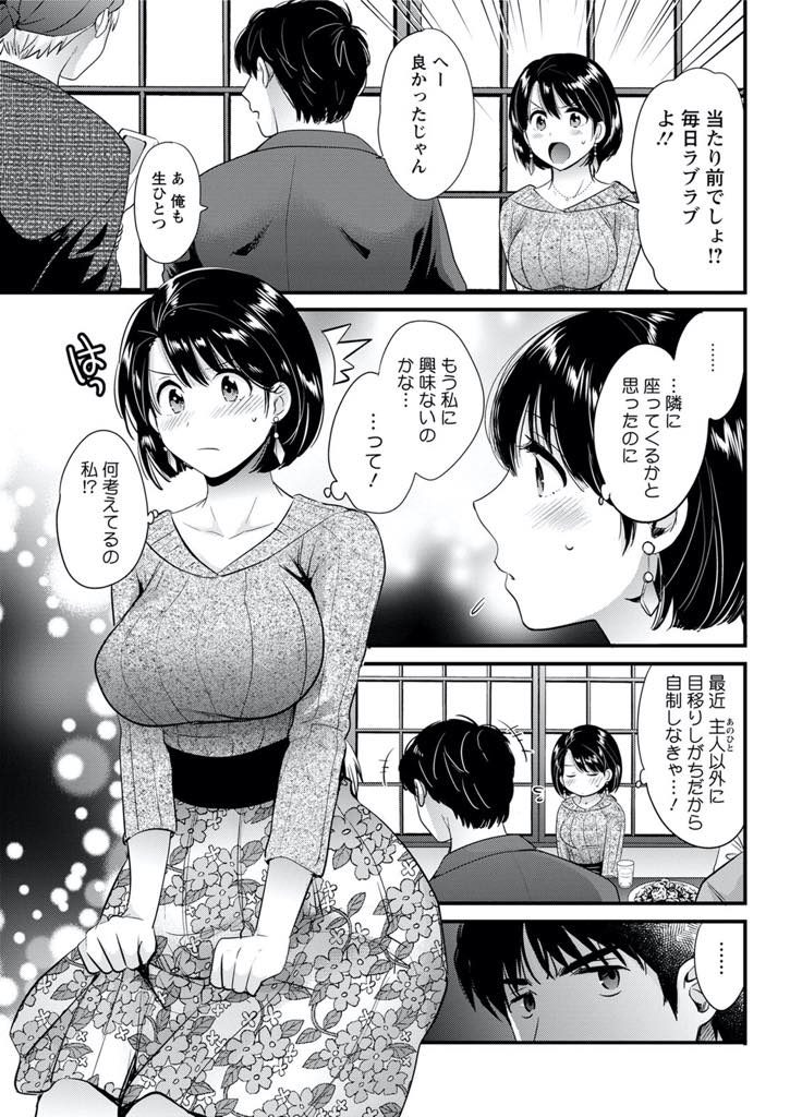 【エロ漫画】同窓会で元カレに足マンされ絶頂するスケベ奥さんが欲求不満を打ち明け浮気棒をおねだりし無責任中出しイキ!