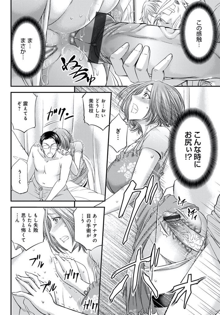 【エロ漫画】入院中の夫とHしてるのを相部屋の患者に見られ寝取られる人妻が目が見えない旦那とハメながらアナル不倫!