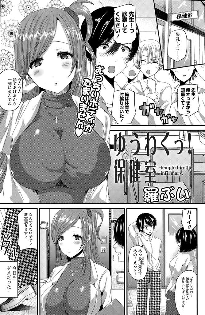 【エロ漫画】保健室に通う生徒に告白されるムッチリボディの臨時教師がエロい本性を露にして授乳手コキし年下チンポ堪能!