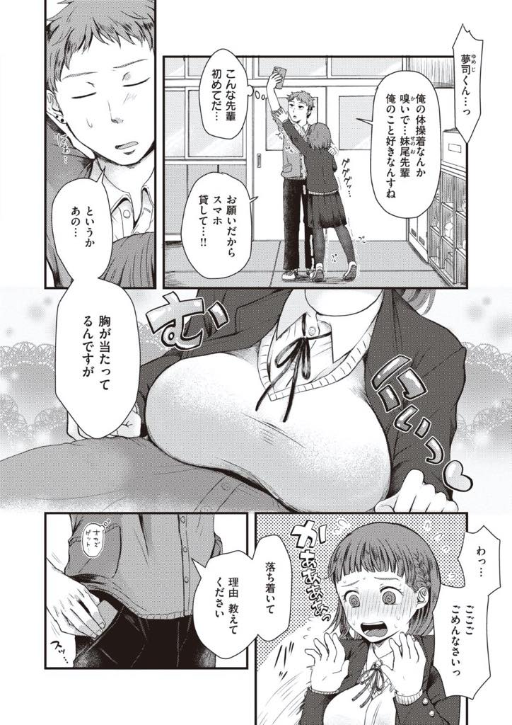 【エロ漫画】気になっていた後輩男子の体操着の匂いを嗅いでいたところを本人に見つかったショートボブ巨乳JKは嗅いでいた理由を説明したら後輩くんとセックスすることになったけど、学校だったので後日改めていちゃらぶセックス