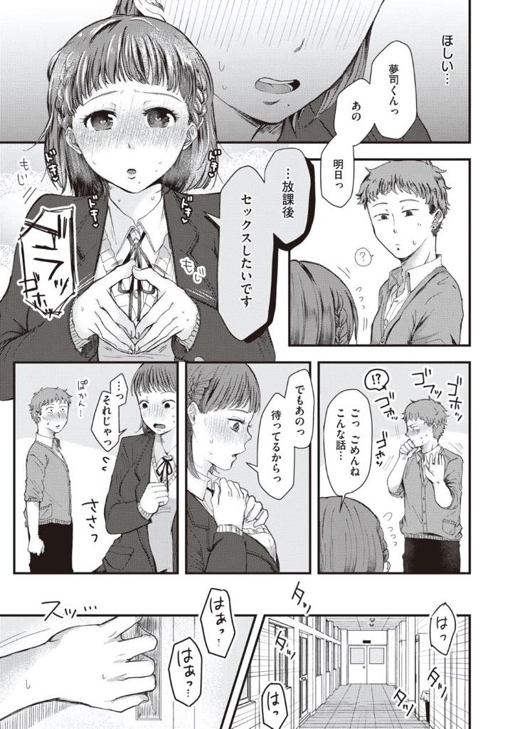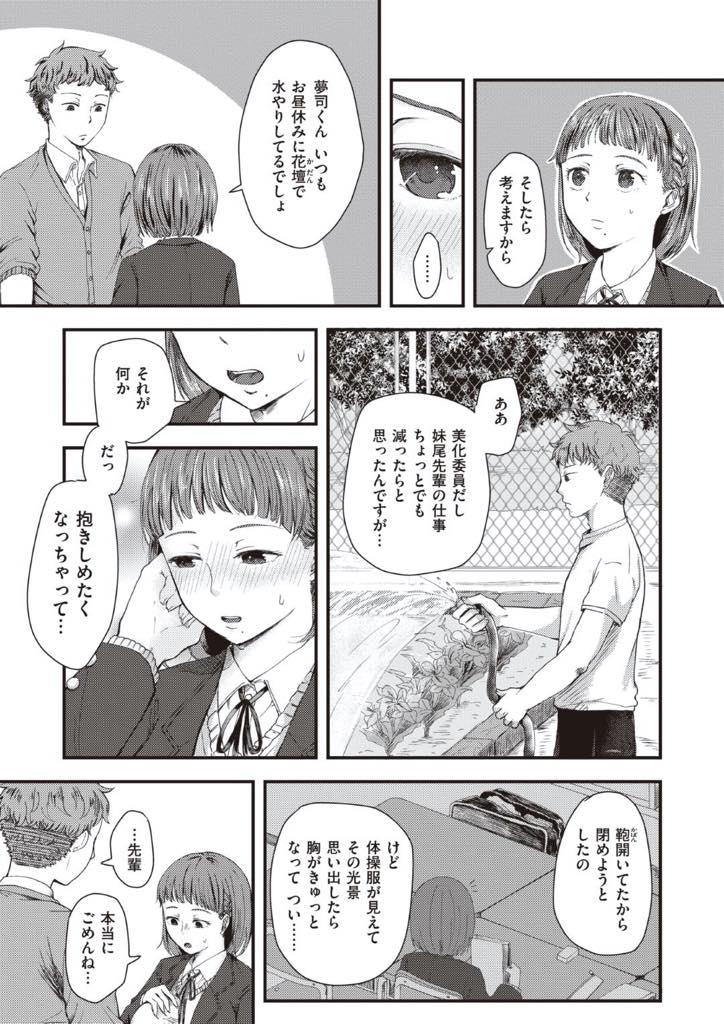 - >【エロ漫画】気になっていた後輩男子の体操着の匂いを嗅いでいたところを本人に見つかったショートボブ巨乳JKは嗅いでいた理由を説明したら後輩くんとセックスすることになったけど、学校だったので後日改めていちゃらぶセックス
