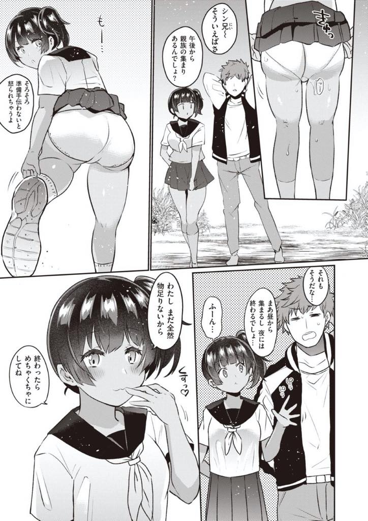- >【エロ漫画】親戚のお兄ちゃんが久しぶりに帰ってきたので迎えた公園でそのまま青姦しちゃうセーラー服のJKとお兄ちゃんはヤルためだけの帰省なのでJKとアナルセックスしたり中出ししたり好き放題!