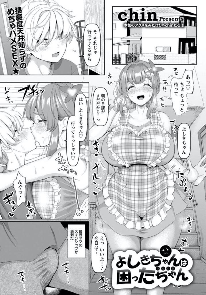 - >【エロ漫画】ムチムチ爆乳人妻は息子の事が好き過ぎて毎日エッチなご奉仕してたら、息子からもおっぱいを吸われ勃起したチンポに興奮してダメと言いながらも生挿入中出しセックス