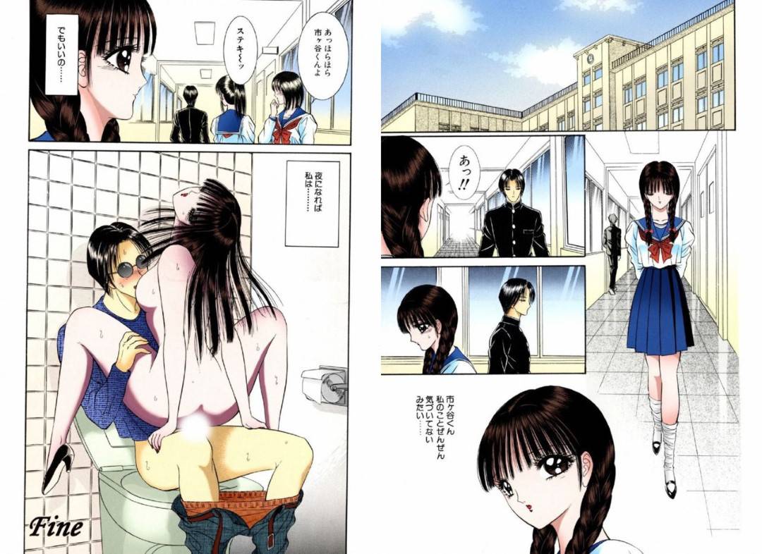 - >【エロ漫画】自分に自信のない平凡なJKは、夜に露出狂として出歩き、声を掛けてきた男とトイレで生ハメセックス!
