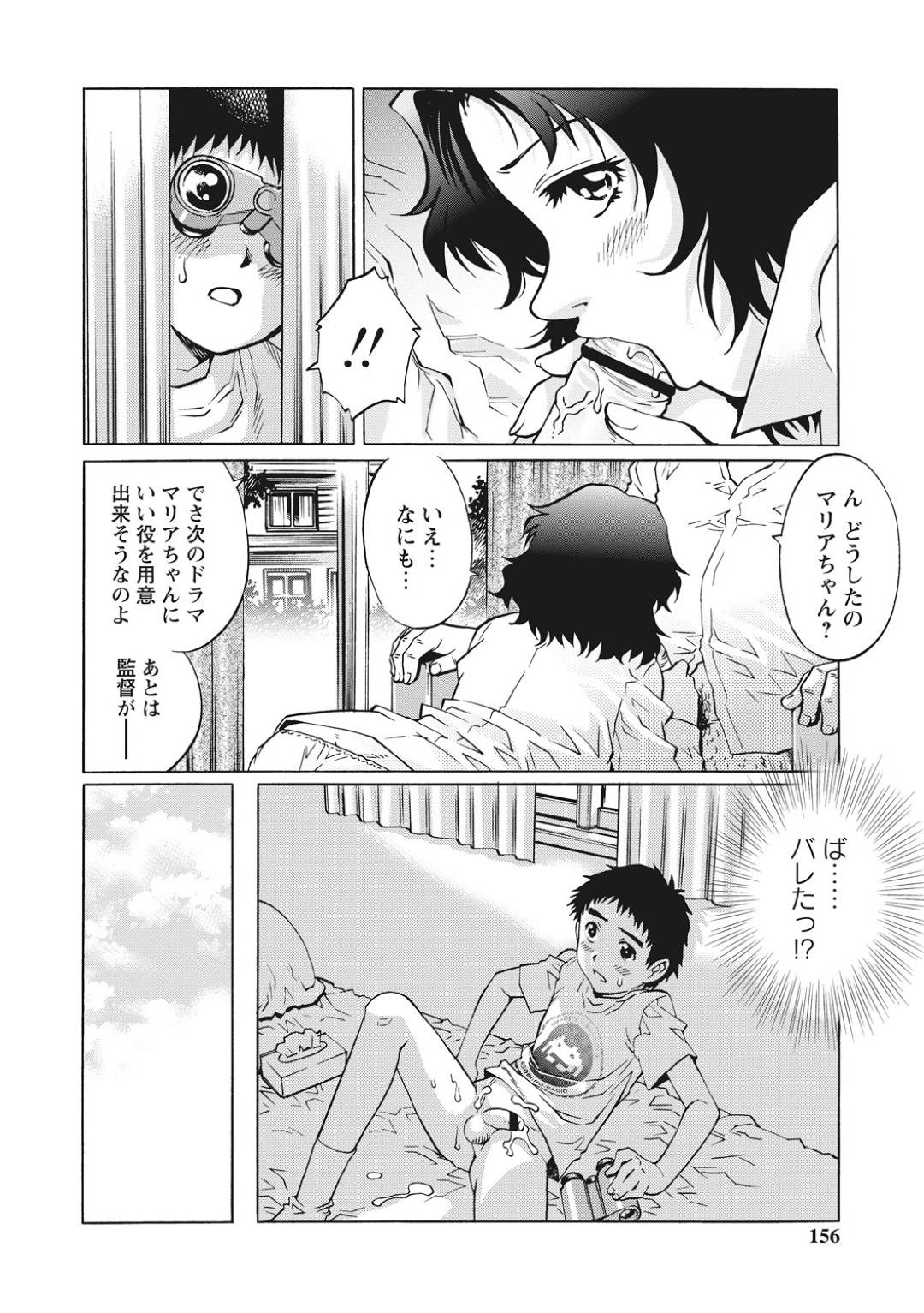 - >【エロ漫画】近所にやってきた大物女優の美原マリア。枕営業の現場を隣家の少年にノゾかれた美原マリアが問い詰めて、口止めに濃厚筆下ろしファックしちゃう。全てを体で解決させる淫乱女優だった。