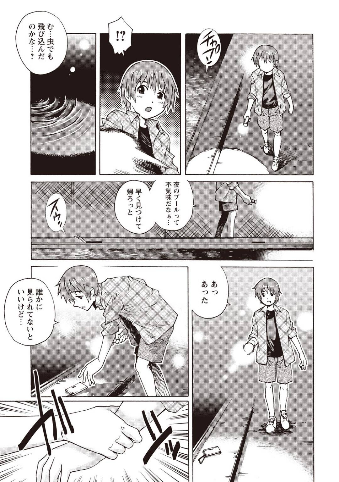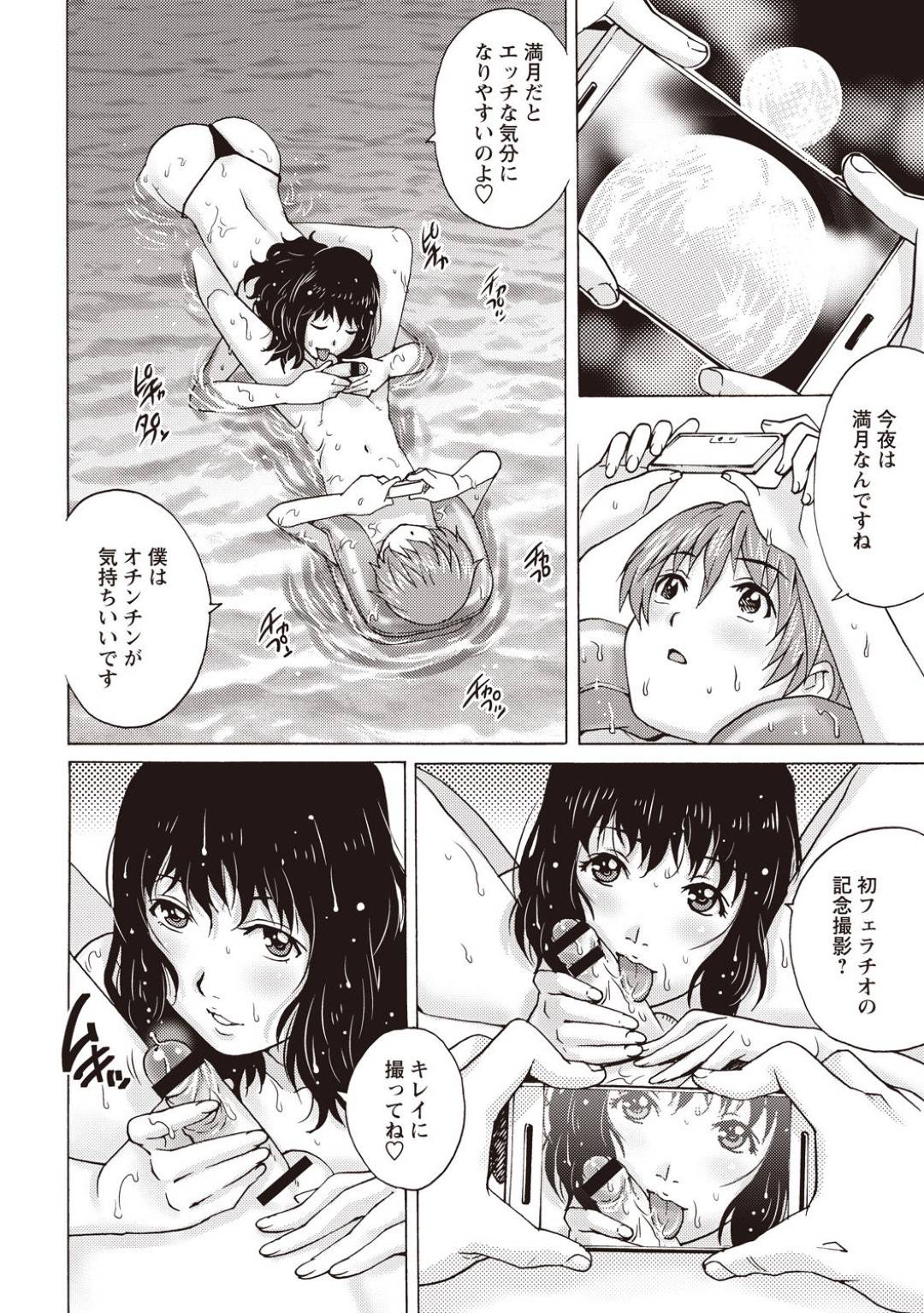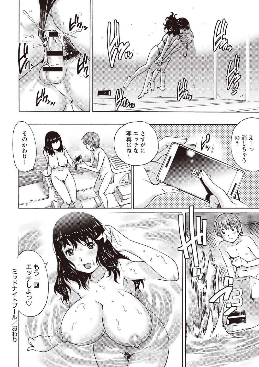 - >【エロ漫画】スマホを忘れた少年が学校に行くと夜の学校プールで憧れの女教師がドスケベ水着で泳いでいる。流れのまま、二人ミッドナイトプールでイチャラブ&ショタSEX
