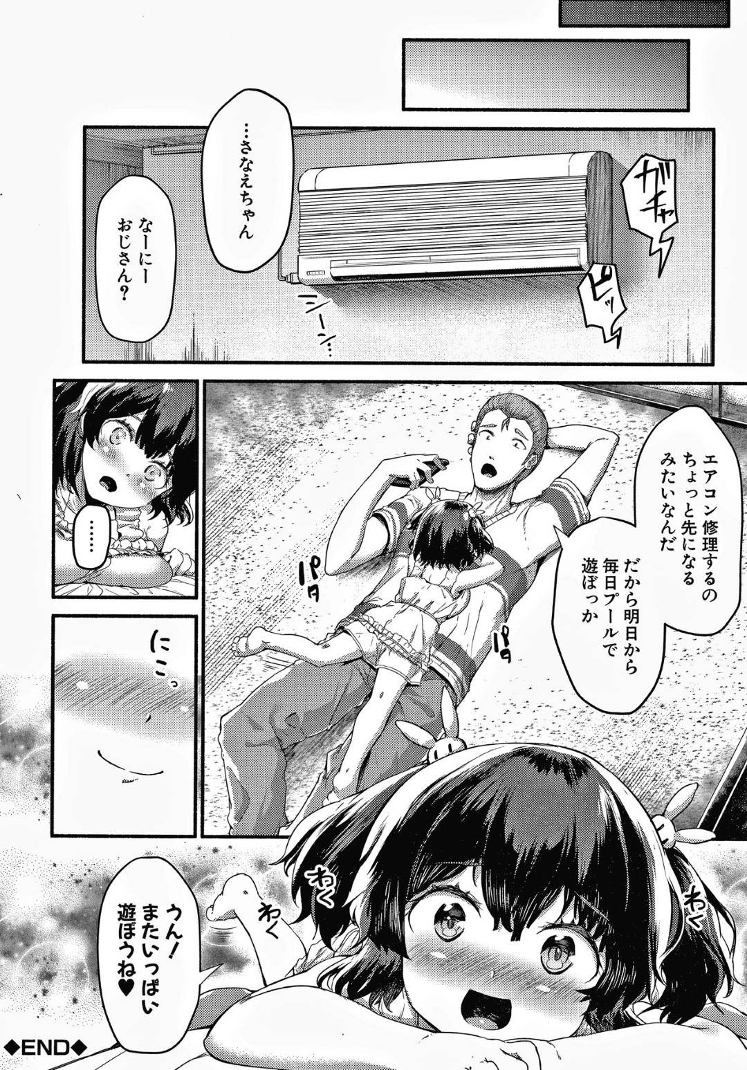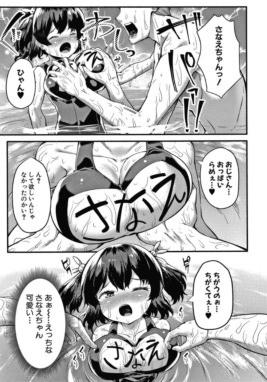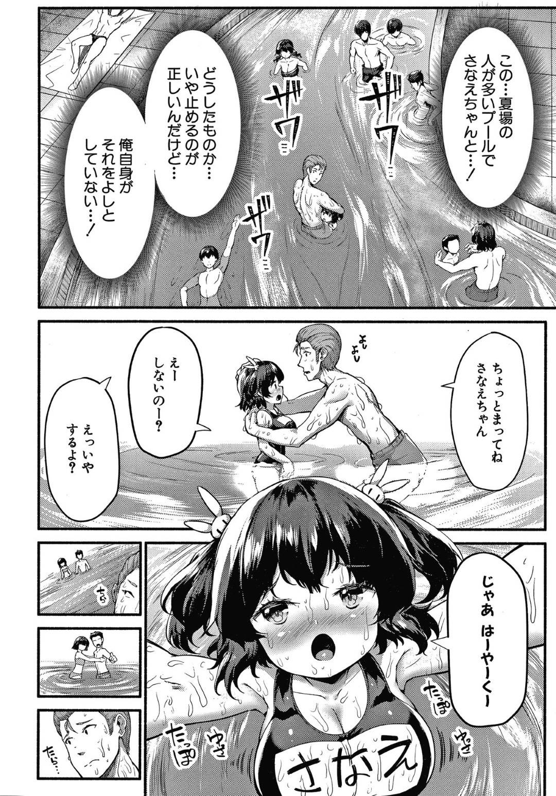 - >【エロ漫画】親戚のおじさんとプールに遊びに来たスク水ロリは、エッチなことを思い出してプールの中で生ハメセックス