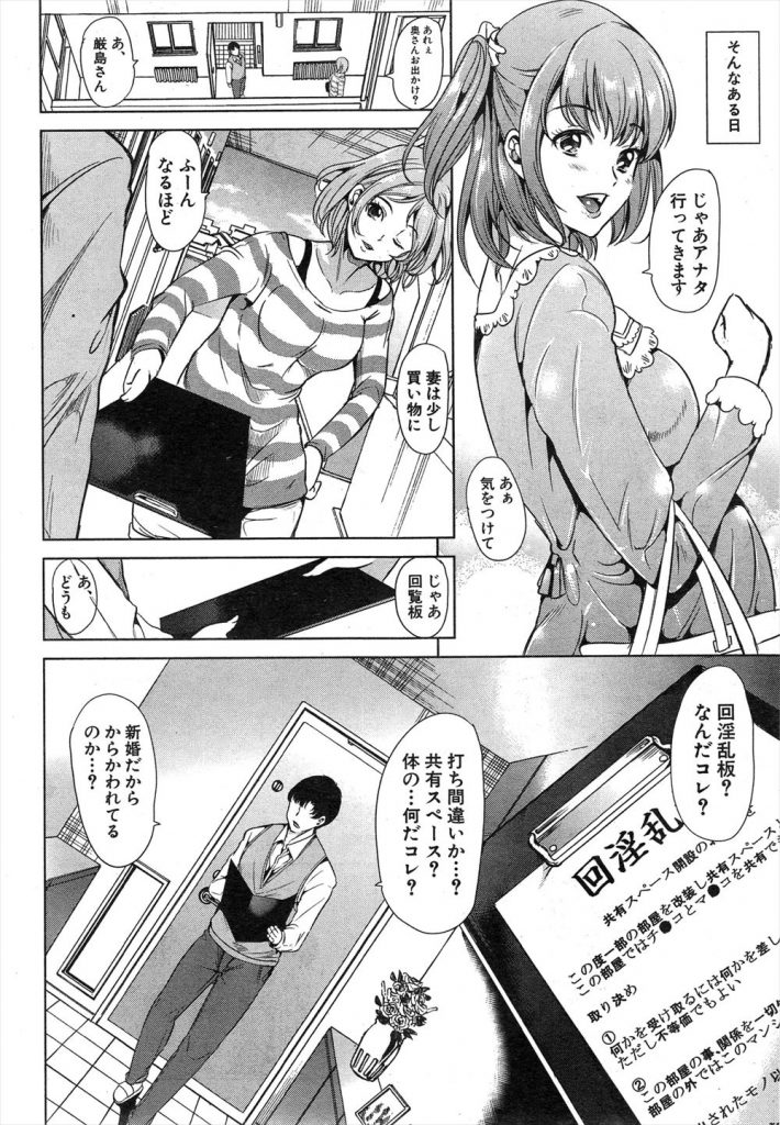 身重の妻と新居を探し引っ越したマンションで管理人のエロ美女から渡された回淫乱板なるものを持って共有スペースに行くと隣人の夫婦や男女が入り乱れて乱交パーティをし住人の精液依存症のJKにフェラ奉仕でザーメンを与え管理人のエロランジェが似合う熟れた体を味見してパンパンに張った亀頭を生挿入で廻りに見られながら膣内射精!