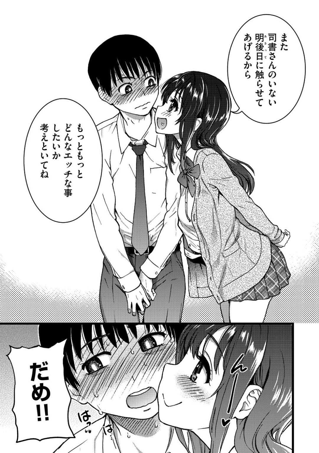 2021/01/06 23:00 【エロ漫画】気になる女生徒2人、束見さんと飯田橋さんからカラダに密着され勃起してしまった眉村くん。正直にその事をカミングアウトしてしまうと予想外な反応が!?「女子に慣れるため、私は動かないし何にも言わないから眉村くんの好きなように触ったり何でもしていいよ」気になっていた可愛い女子達との甘酸っぱい性体験が、ゆるやかに始まる。 JKフェラチオ口内射精 気になる女生徒2人、束見さんと飯田橋さんからカラダに密着され勃起してしまった眉村くん。正直にその事をカミングアウトしてしまうと予想外な反応が!?「女子に慣れるため、私は動かないし何にも言わないから眉村くんの好きなように触ったり何でもしていいよ」気になっていた可愛い女子達との甘酸っぱい性体験が、ゆるやかに始まる。 【1話】【エロ漫画】気になる女生徒2人、束見さんと飯田橋さんからカラダに密着され勃起してしまった眉村くん。正直にその事をカミングアウトしてしまうと予想外な反応が!?「女子に慣れるため、私は動かないし何にも言わないから眉村くんの好きなように触ったり何でもしていいよ」気になっていた可愛い女子達との甘酸っぱい性体験が、ゆるやかに始まる。(Now)【2話】【エロ漫画】鼓動で胸がはちきれそうな、放課後に女の子との約束の日がついに来る。カーテンを閉め切った一室で椅子に座ったまま手出しは禁止「君のこと好きにするから絶対動いちゃ駄目ですよ…」ブレザーを頭から掛けられた状態でたわわな胸を顔に押し付けられて女...【3話】【エロ漫画】二人きりの教室で、目の前で、机を並べてその上に横になった束見さんに「動かないし、しゃべらないから好きなように何でもして」と言われる眉村くん。おそるおそる指で唇に触れ、制服の上から胸を揉み、すべすべの太ももを擦りそこへキスをしてパンツをずらしただけでイキそうになる眉村くんのおちんちん...【4話】【エロ漫画】彼女たちの口も使ったし、アソコも触ったし、残すは眉村くんの固くなったヤツにゴムを装着して彼女たちのアソコへつっこんじゃうだけ!だったハズが司書の先生が毎日来ることになりまさかのお預けに。おとなしく図書館で普通の生活をしていると耳元で「せっかくだからゴムつけてきてみてよ」!?【5話】【エロ漫画】 束見さんに言われるがままトイレに行ってコンドームを装着して図書室に戻ってきた眉村くん。目立たない図書室の奥の方へ行き服の上から眉村くんのチンコをいじり始める。そして服の上からお口に含んだりほっぺに押し付けたりして弄ぶ。チャックを下ろしてゴム付きのチンコを引っ張り出して手でしごくと発射寸前になったところでたったままパンティの上からスマタ開始!!ディープなエロいキスをしながらゴムの中へ大量発射!!【6話】【エロ漫画】まだ図書館に人がいるのに声を殺してヨミちゃんにゴムの中で射精させられた眉村くん。その後に、まだザーメンが入ったまま装着中のチンコを飯田橋さんに弄られながらディープなキスをはじめ、飯田橋さんのパンティをずらし直接アソコを指で擦りあげ、アソコをぐちゅぐちゅと言わせた後は口でぴたりと吸い付き下を這わせたり挿入したりで飯田橋さんを絶頂へと導く!!【7話】【エロ漫画】飯田橋さんをクンニでイカせてしまった眉村くん。そこへ図書室の戸締りを先に帰る先生から鍵を預かってきたヨミちゃんも現れる。みんな帰宅して3人のみになった教室。鍵も閉めれば誰にも邪魔されない。ついに眉村くんは二人に「ふたりとセックスしたい」とお願いする!!文化祭で使用したシートを冷たい机に引いて、3人は裸になってついに念願の挿入!!【8話】【エロ漫画】放課後の誰もいない図書室で束見さん、飯田橋さんの二人の可愛い同級生とついにセックスをしてしまう眉村くんたち三人。束見さんと舌を絡めながら、童貞と処女の卒業を激しく抱き合いながら祝福すると「明日からもいっぱいさせてあげるからいっぱい射精していいよ」の言葉に興奮して大量にゴム射精!!飯田橋さんと交代すると「おっぱい触って」と自ら眉村くんの手を導き、そのエロさに我慢できずにまたまた大量発射!!初めての挿入、初めてのSEX身体の火照りはずっと収まらず…明日はもっと激しく!?【9話】【エロ漫画】今日も図書準備室でゴム姦する眉村くん、飯田橋さん、束見さんの三人。図書館の他の使用者が少ないので何度もセックスを楽しむ。顔射願望のあった眉村くんの要望に応え、飯田橋さん、束見さん二人の顔を並べて自分でシコって大量発射する眉村くん。束見さんの要望は自分のオナニーのオカズ用にすること!【10話】【エロ漫画】図書館の暖房設置工事が冬休中に行われることになり書棚の移動などを手伝う有志の募集に手を上げた束見さん、飯田橋さん、眉村くんの3人。もちろん3人でセックスを楽しむために自ら志願したのだがさらに特別なことに!?カバンの中にたくさんゴムを用意してきた眉村くんに… マイページ