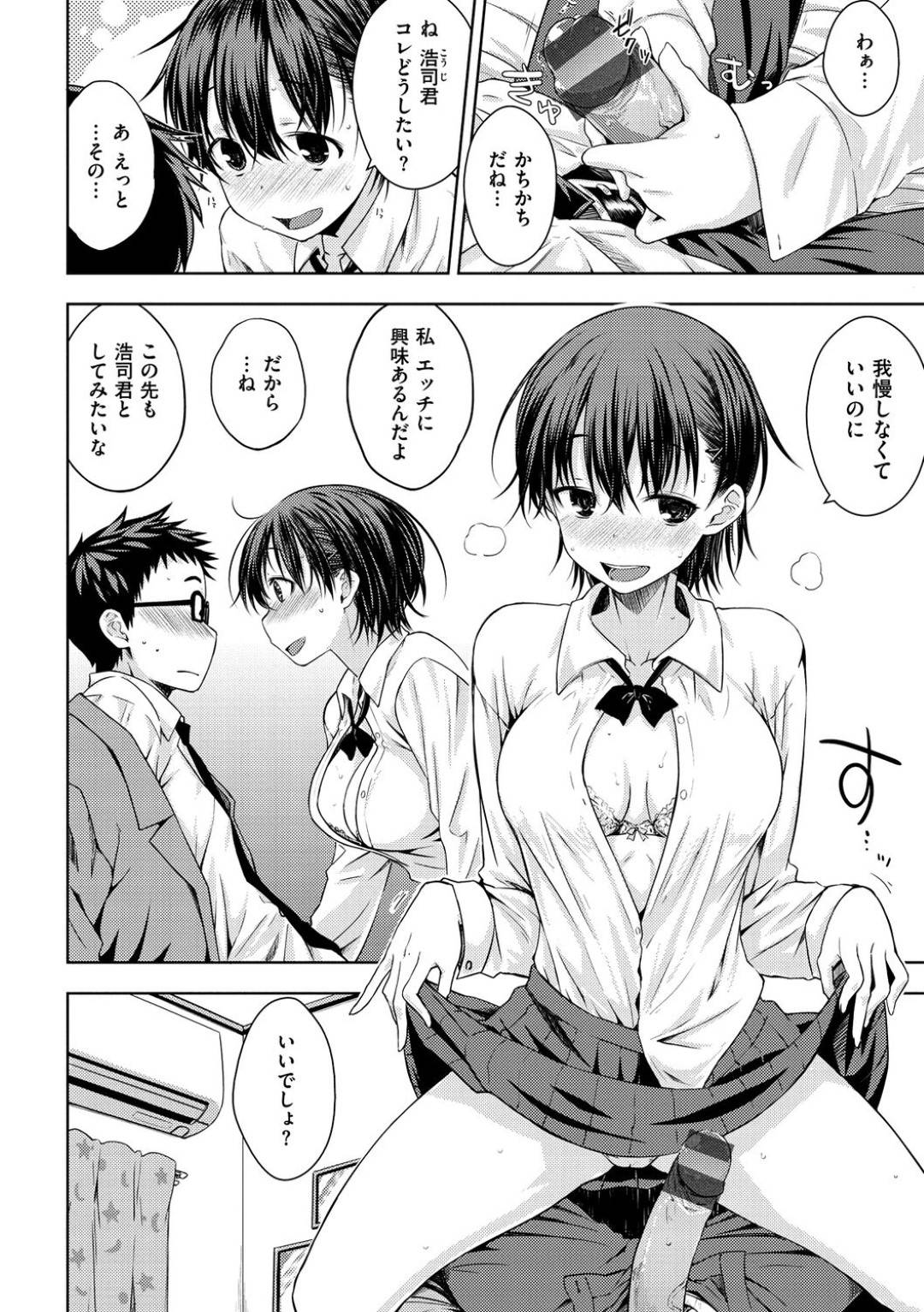 - >【エロ漫画】彼氏と部屋で勉強する真面目系JKがエロ本を見られて焦るも興奮し逆レイプの生ハメイチャラブ初セックス