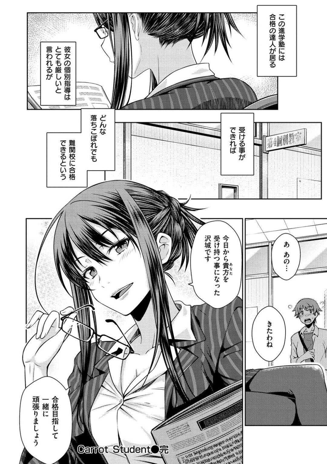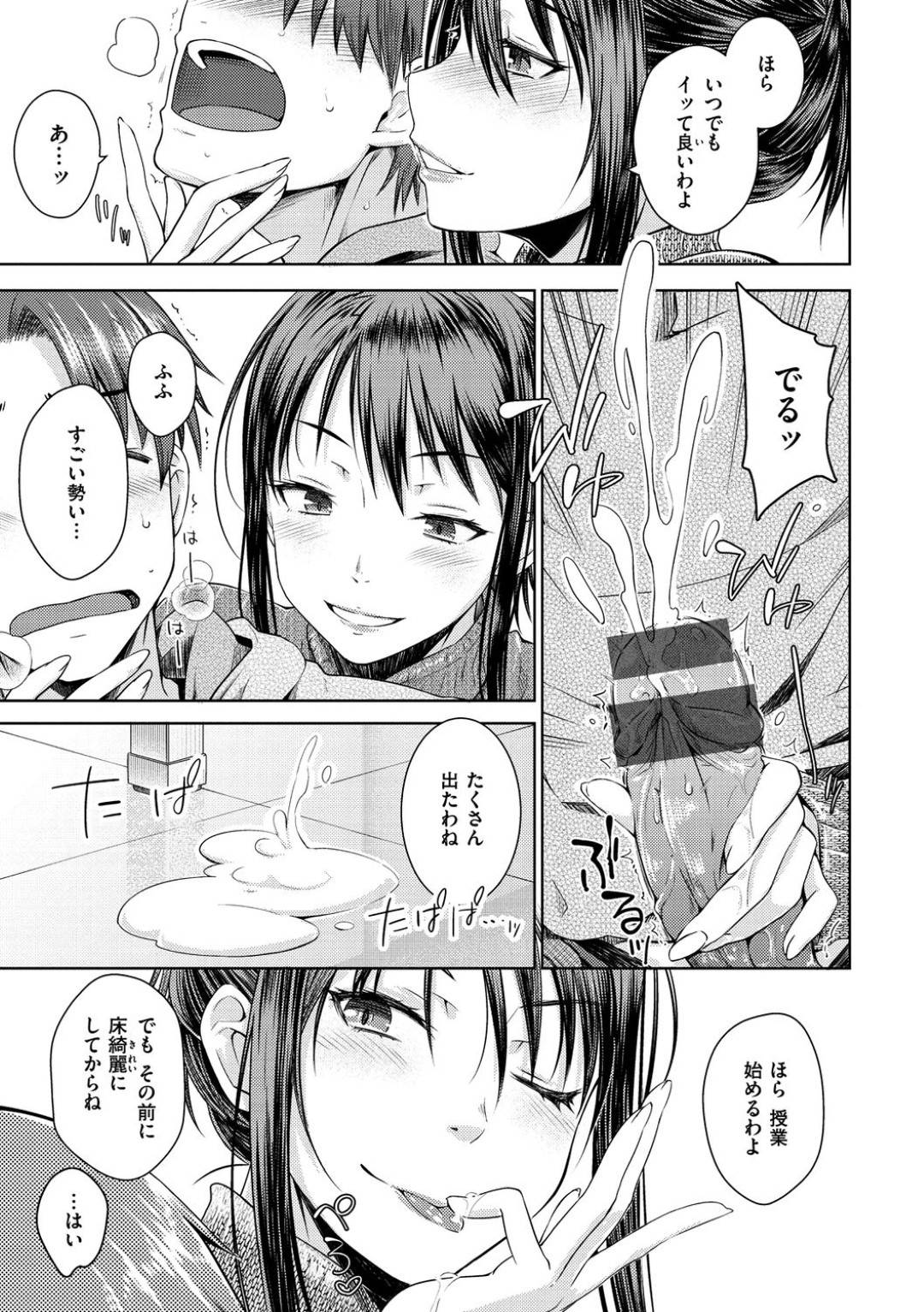 - >【エロ漫画】個別指導で良い点を取るたびにエッチなご褒美をくれる女塾講師は受験に合格したご褒美セックスで童貞を筆下ろし
