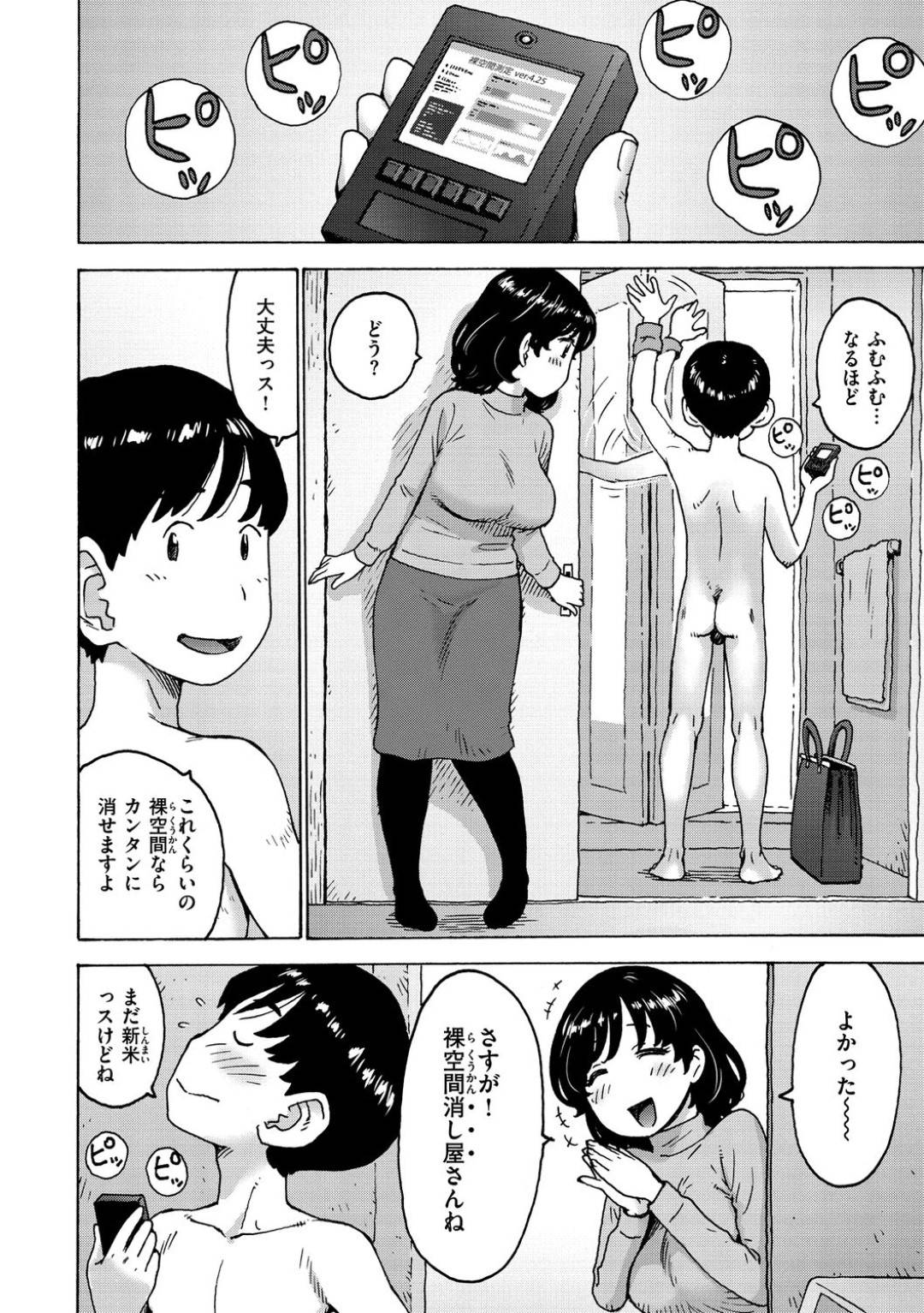 - >【エロ漫画】触れたところだけ裸になってしまう裸空間を消すため専門の男友達と激しくイチャラブ生ハメセックスする爆乳お姉さん